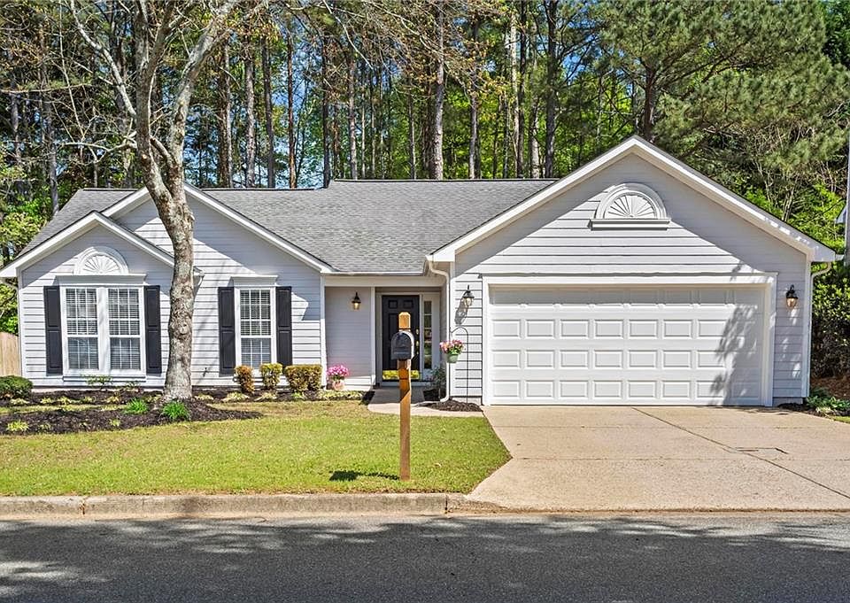 RARE FIND! Step-less RANCH only 1.5 miles from Avalon and just off Main Street! Built by John Wieland, this former model home offers a peaceful retreat in the heart of Alpharetta! Open concept great room is light and bright with high ceilings and engineered hardwood floors and recessed lighting. Kitchen is stainless and white, with a Frigidaire appliance package featuring a beautiful GAS range with convection oven. New blinds and light fixtures throughout, new disposal and dishwasher, new garage door, newer paint, tile, and hardwoods. HVAC is only 6 years old, and roof is 30-year architectural shingle and has just been serviced. Back yard is wooded and private, naturally fenced in. Take a stroll in Cogburn Park, just across the street, featuring a 1/5 mile walking loop, playground, picnic area, and magical kid's piano! Walk to coffee, restaurants, and shopping. Everything you need is within a mile of your new home! Gatewood is a wonderful tight-knit community where the neighbors look out for each other and is an incredible opportunity to move into this coveted area! Only $600 ANNUAL HOA fees for swim/tennis! Dues are paid $150 each in JAN/FEB/MAR/APR. Buyer has option to convert 2-10 Home Warranty and Arrow termite coverage at close. Agent is the daughter of the Seller.