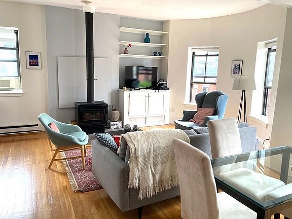 Bright and sunny top floor apartment in elevator building checks all the boxes. This one bedroom has high ceilings, hardwood floors and a modern kitchen with dishwasher and microwave. Spacious living room with dedicated dining area features plenty of windows and a wood burning stove for those cold winter nights. Gorgeous renovated bathroom and generous closet space (coat closet and double closets in the bedroom) make this apartment a must-see. Common laundry, common roofdeck with Back Bay views, and elevator in building. Close to the green and orange lines, as well as restaurants, bars and Whole Foods. Available now!