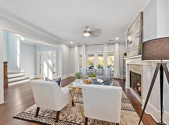 Like-new luxury duet-style townhome located in the heart of Eastover has all the convenience and no HOA. Fully fenced and electronic gated yard has enough room to relax and entertain, yet minimal maintenance. Inside gleaming hardwoods and an open floor plan set the stage for entertaining. Double doors open from the living room to the covered patio for indoor/outdoor living. The bright and fresh kitchen with white quartz and KitchenAid appliances includes a 36" gas range. The main level offers a 4th bedroom or perfect home office. The 2-story foyer leads upstairs to two additional secondary bedrooms, a full bath, laundry, and an owner's suite with a spa-like bath and oversized shower. This home features a two-car attached oversize garage with room for storage. Property includes a hot tub. Enjoy an excellent location: close to restaurants and shopping, 5 minutes to Uptown, 10 minutes to SouthPark and 15 minutes to the airport.