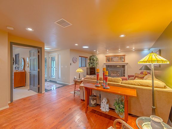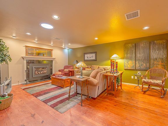 Gorgeous Prescott home close to downtown! Beautifully upgraded home in the pines w/ amazing landscaping, covered patio & outdoor fireplace for relaxing next to bringing the indoors out. Spacious living room w/ cozy fireplace to relax next to. Stunning kitchen w/ granite countertops, island w/ breakfast bar, skylights & dual sinks are perfect for the at home chef! Intimate dining room perfect for hosting quite dinners in. Master suite w/ secluded access, through French doors, to the back patio. Dual vanities & jetted tub to relax in & soak your cares away. Additional bedrooms & bathrooms make this a perfect mountain retreat or a full-time residence. Den is excellent for a home office, study, or library! This one of a kind home will not be available long! Schedule a showing today!