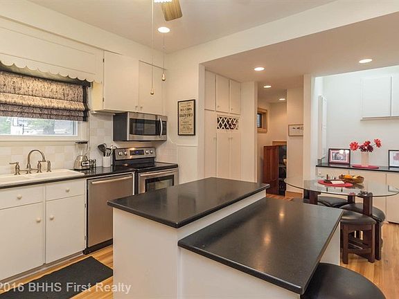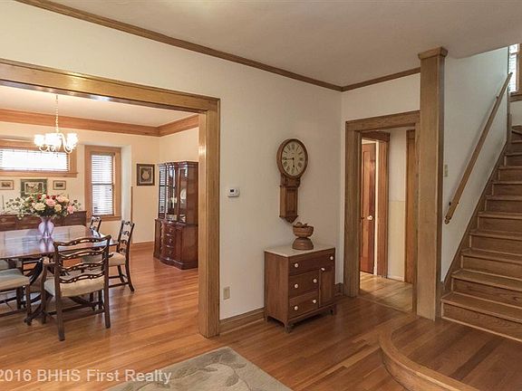 This is a lovely 4-bedroom, 2 story, 3574 sq ft, home built in 1918 w/ hardwood floors throughout, wide oak trim; main living space has total of 3 bathrooms (three-quarter, half, and a full); living room with fireplace and French doors to front porch/terrace, French doors to solarium, formal dining room, family room/studio with beautiful skylight, screened in summer porch/room off patio; kitchen beautifully remodeled and enlarged in 2012, stainless, quartz counter tops, skylight; 4 bedrooms on 2nd level (full bath on the 2nd floor); sitting room in master; new roof 2014, furnace/AC 2006, water heater 2008; security system, invisible fence, 1 car attached, tuck-under garage (does hold 2 cars in tandem fashion if one is small); lower level one-bedroom apartment with three-quarter bath, kitchen, and living room; laundry on lower level; large lot w/ large trees, perennials (lilies, hostas). This home has been beautifully maintained & all updates are in keeping to its historic period.