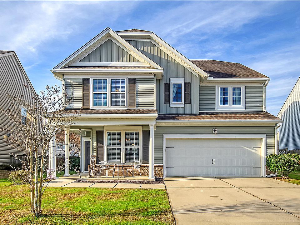 Stunning 4 bedroom, 3.5 bath house nestled in the highly desirable Foxbank Plantation. Downstairs, the open floor plan offers a flex room currently used as an office, dining room and an inviting living room that flows into the upgraded kitchen. The kitchen has a grand island, granite countertops, backsplash and pendant lights. On the second floor there is an open loft, large primary bedroom with walk-in closet and beautiful primary bathroom, two nice sized secondary bedrooms and a full bath. On the third floor, there is an oversized 4th bedroom with full bath. The backyard is fenced and has a patio with gazebo. Foxbank Plantation offers a 67 acre lake with kayak access, community pool, pavilion, dog park and more. Set your showing up today before this house is gone!