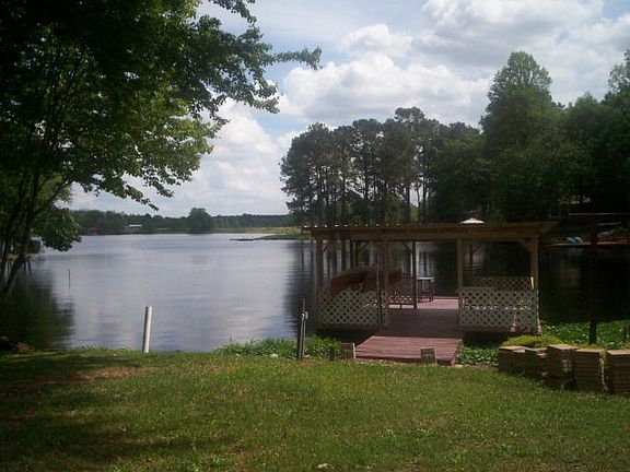 What a picture perfect view with all the lake front amenities to make this your get-away home or permanent residence! This walk in ready brick home has a Florida Room that fronts the lake with wall to wall windows to open and take in the sights and sounds of the lake. From the Florida Room you enter the open floor plan that features the Den, Dining Room, and Kitchen. The Den showcases a brick fireplace that has gas logs to make those chilly nights disappear. Cover dock, outdoor storage shelter, and greenhouse makes this home complete.
