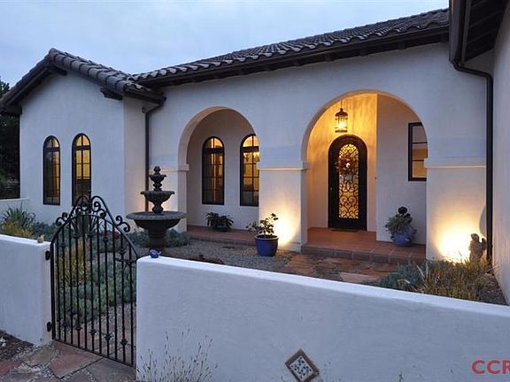Awesome, newer built , custom Mission style home located at the end of a cul-de-sac in east Arroyo Grande. This amazing single level home is loaded with top of the line amenities. Featuring 3 bedrooms and 2.5 baths with approximately 2139 sf on a 19, 166 sf lot. This home has stunning architecture, well thought out floor plan and is loaded with mission style character. Mexican Paver floors, travertine floors, Granite and marble countertops, custom Iron front door, custom distressed cabinetry, custom window coverings, Pella windows and doors, Mission stucco finish and so much more. Entertain in style with a spacious approximately 60 foot patio and fire pit area. There is a very spacious oversized 2 + garage with 10ft doors, custom stained floors and stainless steel sink on the exterior side of the house. Textured, colored driveway and fenced courtyard patio with fountain and stone entry walkway.