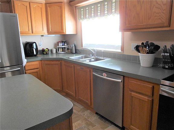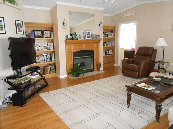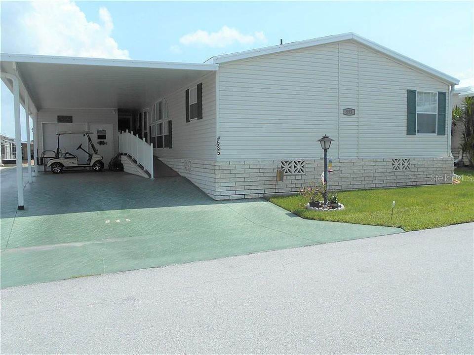 Very nice THREE bedroom two bath home located in a 55+ golf and waterfront community. As you step inside, your view spans the living/dining/kitchen area showing the openness of this home. The living room has lots of light, and a wood burning fireplace flanked by storage shelves. The kitchen has cupboard storage on three walls, a built- in desk, a lazy Susan, an island, and all new stainless steel appliances. The laundry is located just off the kitchen. The master bedroom in this split bedroom arrangement has a large walk-in closet and spacious bath with separate shower and plenty of storage. The home is accessible by a concrete handicap ramp which also leads to a 14'x17' vinyl room (great for entertaining)! The attached storage shed will accommodate a golf cart. New roof contract signed and will be paid for by the sellers. This home is in great condition and almost all the rooms have been painted within the last two years. Sellers have priced this home to sell, so be sure it's on your quick short list.