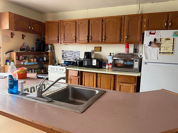Cute 2-bedroom ranch on THREE LOTS with a large garage in a quiet neighborhood, available at a great price! This home would make for an excellent investment opportunity or could be fixed up to serve as your dream home! The open-concept living room with vinyl plank floors makes for the perfect spot to cozy up with a good book, while the adjacent kitchen offers tons of cabinet and counter space! Two spacious bedrooms, a bathroom & laundry room (washer & dryer stay) round out your living space, but you'll love sipping your morning coffee or hosting friends for cookouts this summer on your 20x8 deck and taking in your (partially-fenced) backyard retreat! There's a 2.5-car detached garage to house all your toys, plus shed for added storage space! NEW furnace and A/C unit (2023), LOW taxes, NO HOA, cheap utilities in a great location! Schedule your showing today!