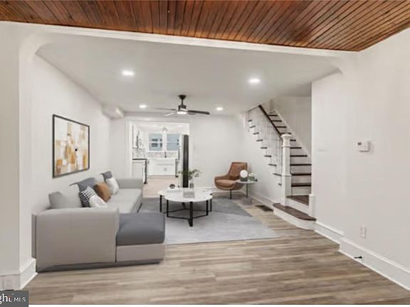 Welcome to 535 Glendale Rd, a reimagined 4-bedroom, 2.5-bath rowhome where classic charm meets bold, modern design. Step through the statement black door and into a bright open layout with warm wood accents and sleek finishes throughout. The designer kitchen features shaker cabinets, quartz countertops, a farmhouse sink, and a striking mosaic backsplash. Upstairs offers 3 spacious bedrooms and a spa-like bath, while the finished basement adds a guest suite, home office, or gym with a full bath. Enjoy the comfort of central air, luxury flooring, and recessed lighting throughout. Conveniently located just 2 blocks from Stonehurst Elementary School, within walking distance to multiple public transportation stops, and only a short drive to Center City Philadelphia, the airport, or shopping in King of Prussia. This move-in-ready home blends modern comfort with unbeatable accessibility.