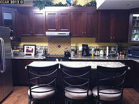 3 bedroom 2 full bath Condo in triplex building on Albany hill view of Berkeley Kitchen with granite countertop & cherry cabinets & Hard wood Floor. Two stories First level has living room, dining area, kitchen & one large size bed room plus deck (view of Berkeley hill) Second level has 2 large bed room & two full bathrooms. Washer & dryer Combo Kitchen has electric stove and oven, dishwasher & Doble door refrigerator Stainless steel appliances. Has wood burning fire place in the living room Hardwood in the dining area, living room and upstairs bedroom. Two bedrooms have carpet. One Garage Detached for storage only. Water & garbage is included in rent Move in cost, security deposit is $3650 pulse first month rent. Walking distance to El Cerrito Bart & Salon Ave, El Cerrito plaza, shopping, restaurants & Movie Theater. Non smoker One Small Dog or One Cat ok Water & Garbage in included in Rent