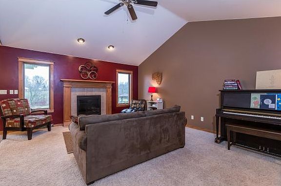 Backs to no homes! Welcoming covered front porch opens to spacious & bright living rm w/vaulted ceiling & cozy FP. Applianced kitchen offers granite countertops, walk-in pantry, snack counter & dinette w/doors to patio. Huge finished LL w/bar area, bedroom & half bath. Main level master w/private full bath. 1st floor laundry. 2.5 car attached garage. Large landscaped lot close to all amenities.