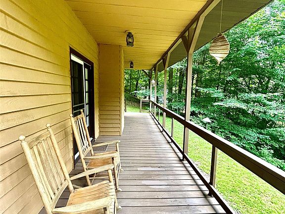 Cabin by the creek! Perfect mountain getaway in the beautiful mountains of Western North Carolina! Charming 4 bedrooms, 2 baths with 190 ft+/- of bold creek frontage. Covered front porch overlooking the creek. Spacious living area with a wood burning fireplace, main level living with one large bedroom on main floor along with kitchen, dining room, laundry room and a large bathroom. Upstairs has a large sitting room landing area, three additional bedrooms and a second bathroom with a walk in shower. Minutes to downtown Franklin with easy access, well maintained road all the way to the property. Close to Highlands, Cherokee Casino, Bryson City, Asheville and NE Georgia. Also close to Western Carolina University. Many outdoor activities close by including hiking, fishing, rafting, waterfalls, gem mining and so much more. Short term and long term rentals allowed. Minimal restrictions. Home comes mostly furnished.