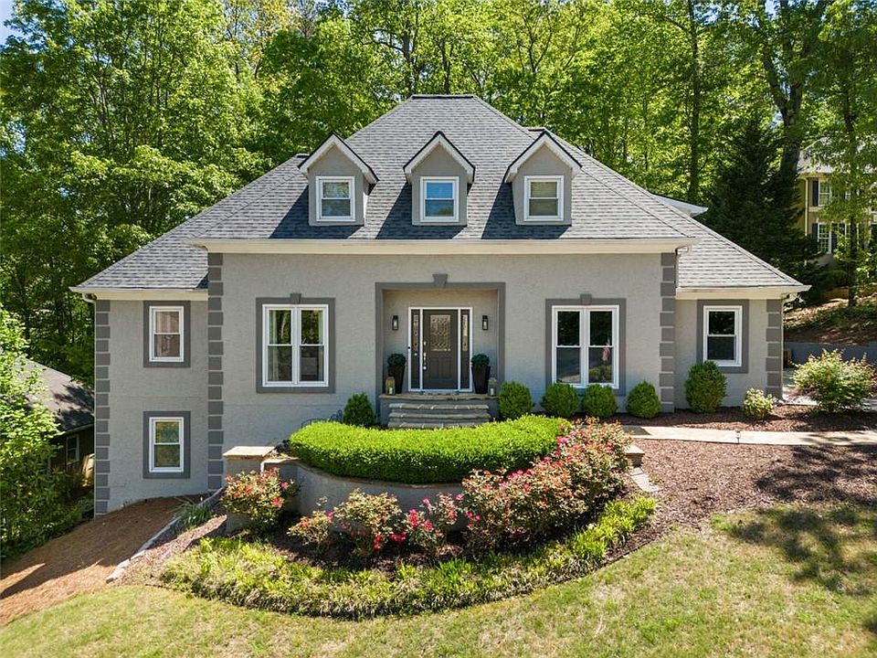 Discover the perfect blend of elegance and comfort in this idyllic home, perfectly situated just minutes from downtown Historic Roswell at the end of a beautiful hilled street on a quiet cul-de-sac. Walk up the stone steps of the front porch and you will be warmly welcomed by an inviting foyer with high ceilings, spaciousness, and natural light. The heart of the home lies in its grand open living room with sky high ceiling that overlooks the serene backyard, and the fireplace and built-in bookshelves offer a cozy environment. The chef of the family will enjoy the gorgeous open kitchen with marble countertops, efficient layout and walk-in pantry + laundry room. Hosting friends and family is a breeze in the formal dining room, and casual meals in the breakfast room are flooded with natural light from the walls of windows that let the outside in. Retreat to the keeping room off the kitchen to enjoy a book by the window or savor your favorite beverage with friends. This meticulously maintained home features a primary on the main level, offering a peaceful retreat from the bustling world outside. Storage is easy and enjoyable with the newly renovated custom primary closet and the en suite bathroom Upstairs you’ll find three additional bedrooms plus another living space, perfect for hosting long term guests or having a creative or play space. Rounding out this expansive home is the terrace level boasting built-in bar, game room, workshop + office and casual living space. With a fifth bedroom and ensuite bathroom, the lower level presents an ideal space for out of town guests or an in-law suite. Outside, the multi-tiered back deck overlooking a wooded view creates an oasis for outdoor dining and entertaining, and you'll love the community pool and tennis courts. Located in the sought after Roswell High School District Cluster and conveniently located near Historic Roswell, enjoy all of the shopping, dining and entertaining Roswell has to offer with easy access to GA 400. Don’t miss your chance to make this house your home.