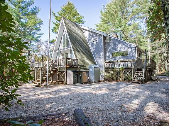 HIGHEST AND BEST due by 10/19 at 5pm. What an incredible house! Nestled on a private 3.5 acre wooded lot, this charming A frame ââ¬Åtree houseââ¬Â in the woods presents a unique opportunity! The main level features an open concept floor plan that is flooded with natural light. The main bedroom is a loft style with room for an office. The lower level (below grade) features 2 rooms being used as bedrooms and extra living space. Enjoy your morning coffee in the three season porch and then relax in the hot tub after a long day. Invite family and friends over to enjoy sââ¬â¢mores around the outdoor fire pit. This gem of a house is located in a quiet neighborhood close to many outdoor activities such as trails for hiking and ponds for kayaking. Charm and character abound in this hidden gem. Donââ¬â¢t miss this one, it truly is one of a kind!