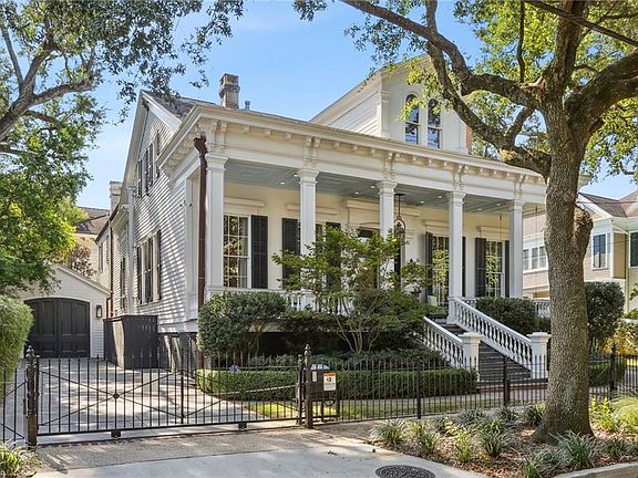 Lovingly restored, beautifully decorated, and impeccably maintained, this stunning Raised Center Hall Villa, built in 1869, is a rare find. Set on an oversized, beautifully landscaped lot shaded by century-old live oaks, this historic landmark blends timeless architectural detail with thoughtful modern updates to create a light-filled, elegant living space. Featuring elements of both Greek Revival and Italianate styles, the home was originally built facing St. Charles Avenue and relocated to its current site in the early 20th century.
