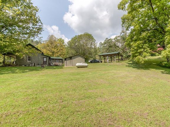 This country cabin was built in 1880. Sit on the large covered front porch and enjoy the peacful sound of the nearby creek. The living room has a propane gas fireplace, wood beam ceiling and a reading nook. A laundry room/mud room is conveniently located off the kitchen. The kitchen has nice cabinets, a bar seating area and adjoining dining area. The bedroom has an adjoining enclosed porch that is currently used as an office area. Upstairs is a bonus room. There is a detached carport and a storage building. Buyer/buyers agent to verify all information.