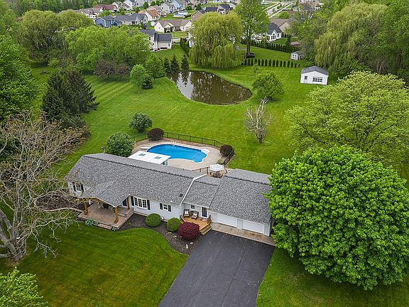 IMPRESSIVE ranch home situated on over 9 acres! Open floor plan! Kitchen has cabinets galore, pantry and vaulted ceilings and all appliances included! Dining area! Huge living room! Hardwood floors throughout! Master bedroom has a master bath with a walk- in custom tiled shower! Additional 2 bedrooms and full bath on the first floor! Enclosed sunroom perfect for relaxing overlooking your serene backyard complete with in-ground pool, pond, and huge shed! 2 car attached garage! Hiking trails on property! Hilton Schools! All offers being presented Thursday at 2pm.