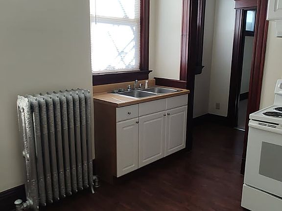 The apartment includes a stove and refrigerator, and coin laundry is conveniently located in the basement. Tenant pays electric only heat is included through a gas boiler, making it easy on your budget.
