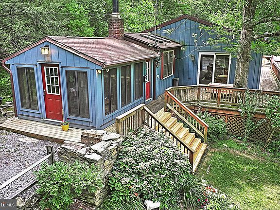 Welcome to your mountain paradise at 535 Maryland Ave, perched on a serene five-acre expanse atop Bear Mountain in the captivating landscape of Adams County, Pennsylvania. This exceptional property offers a truly enchanting retreat that seamlessly blends modern comforts with rustic charm. Upon entering, you'll be greeted by a sense of tranquility and seclusion. The property is enveloped by forests on all sides, providing an unmatched level of privacy while remaining easily accessible. Nature enthusiasts will revel in the abundant woods that extend for hundreds of yards, ensuring a peaceful haven away from the bustle of everyday life. The heart of this mountain retreat is a lovingly restored cabin that embodies both warmth and contemporary living. The cabin exudes a rustic ambiance, boasting a wood-burning fireplace in the cozy living room—a perfect spot to unwind on chilly evenings. The cabin itself has been thoughtfully renovated, boasting modern amenities while retaining the aura of a traditional wooden cabin. From the kitchen with its updated appliances and cabinets to the sunroom that bathes the interiors in natural light, every aspect of the living space has been meticulously reimagined to meet contemporary standards while preserving its cozy character. Ceiling fans grace every living area, ensuring comfort year-round, while the satellite television and high-speed DSL internet connectivity offer the convenience of modern entertainment and communication. The primary bedroom and bathroom have been expanded and modernized, while the second bathroom has been tastefully updated. Whether you are looking for a second home or an active retirement home this property fulfills the practical needs with 4 bedrooms and 2 full bathrooms. Adjoining this is an expansive deck that offers peaceful views of the morning sunrise with coffee, but also two separate dining areas for enjoying meals amidst nature's beauty. Nature lovers will find much to explore here. A spring-fed swimming pond beckons during the summer months ensuring endless fun on the water. For those seeking relaxation, a hot tub provides a private sanctuary for unwinding while soaking in the stunning surroundings. And the sloping downward yard is the perfect runway for winter time sledding. The property's landscaping is adorned with a beautifully maintained garden, a volleyball net for friendly matches, a hammock for lazy afternoons, and a mature fruit-bearing apple tree that adds a touch of orchard charm. An outdoor fire pit invites gatherings under the stars, while the converted barn offers ample storage space for equipment and belongings. The property has also been enhanced with practical improvements such as a water diversion and drainage system, enclosed crawl space, and a leveled driveway with ample parking space. Conveniently located just a short fifteen-minute drive away, 535 Maryland Ave offers easy access to the renowned Gettysburg National Park, the National Apple Museum, Piney Apple Golf Course History, the famous Appalachian Trail, fishing and shopping. Whether you're in need of daily essentials or looking for a leisurely shopping experience, you'll find a range of retail outlets, boutiques, and specialty stores within a short drive. Book your showing today!