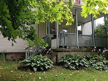 This home sits on a large lot of over 4 acres, which is spaciously landscaped with perennials. The layout of the home is functional and well set up. Upon walking through the front entrance, you are greeted in the common area of the house. This area accompanies the walkways to the dining space, living space, kitchen, and the stairs to the second floor living space. Through the door on the right of the common area, there is the large dining area with hardwood flooring. After entering the dining area, the eat-in kitchen with a vast amount of cabinet space is on the left. Proceeding left from the front entrance to the living room you are greeted by the beautiful fireplace with character and charm. Once you have completed your tour down stairs you may precede to the wood-railed staircase to the upper level of the home. On the upper level, there are three large sized bedrooms and a smaller captive room that could function as a nursery or office. There is a full bathroom on both levels of the home. This home has beautiful potential for any buyers to personalize with their own style and updates.