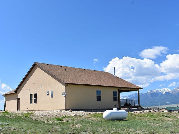 Spacious Home in Westcliffe with Big Mountain Views. This spacious, one-level, stucco home in the town of Westcliffe is light, bright and airy. A vaulted ceiling in the living room & kitchen, 9 foot ceilings throughout and big bright windows give this home a spacious open feel and stunning views of the Sangre De Cristo mountain range. Built in 2021 and well maintained, the home is comfortable as well as beautiful. Warm beige tile flooring throughout the living spaces keeps the home clean, bright and low maintenance. Each of the 3 bedrooms are generously sized and have plentiful closet space. The primary bedroom offers a tray ceiling and exterior door leading to the covered back deck. A spacious primary bathroom features a freestanding soaking bathtub, large tile shower, and double vanity with granite counter top. The bright, open kitchen has granite counter tops, large kitchen island, stainless steel appliances, beautiful cabinetry and generous pantry space. The kitchen also provides access to the covered back deck for entertaining, relaxing, or star gazing. Oversized 2-car garage for extra storage. A beautiful and well designed home with the convenience of in town living. Adjoining lot available to purchase separately.