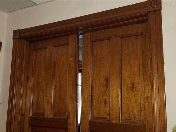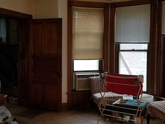 Home sits on corner lot, fenced backyard, alley access and concrete spot to put a garage. Hardwood floors, original woodwork, pocket doors and stain glass front window. Other room on main floor could be a bedroom if heat source was added.