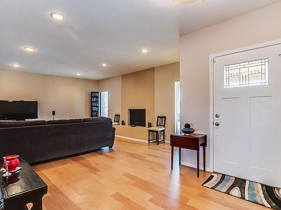 Single story slump block construction home completely remodeled in 2016. This 4 bedroom 2 bath w/laundry/extra room with a mini split entrance home features Silvered American Birch hardwood floors, stainless appliances and QUARTZ counter tops, as well as a breakfast bar in the kitchen. A large dining room and open expansive living room with a fireplace. The backyard has tile back patio and a large tuff shed. Remodel was completed w/permits. Home warranty included.