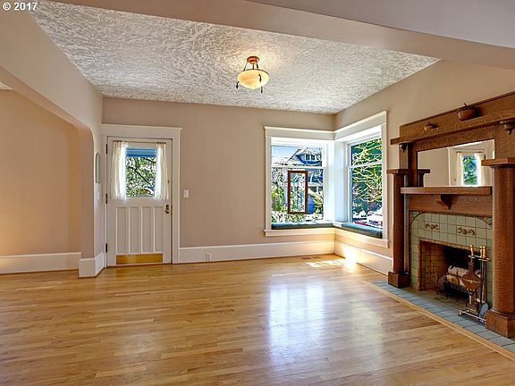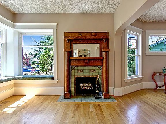 Old Portland classic home located steps from Peninsula Park. High Ceilings, grand proportions, arches, window seats, tiger oak columned fireplace mantle w/custom tile. Updated kitchen cabinets and SS appliances, enclosed sun porch, library w/built-ins. Architecturally stunning, remodeled in period. Three bdrms w/full bath up, 4th bdrm, full bath on main. Full unfinished basement,, AC, garage.