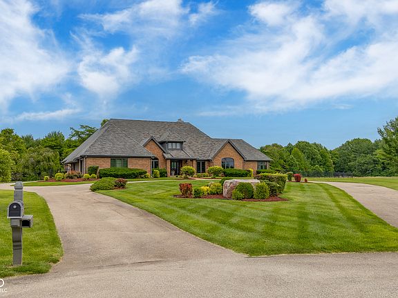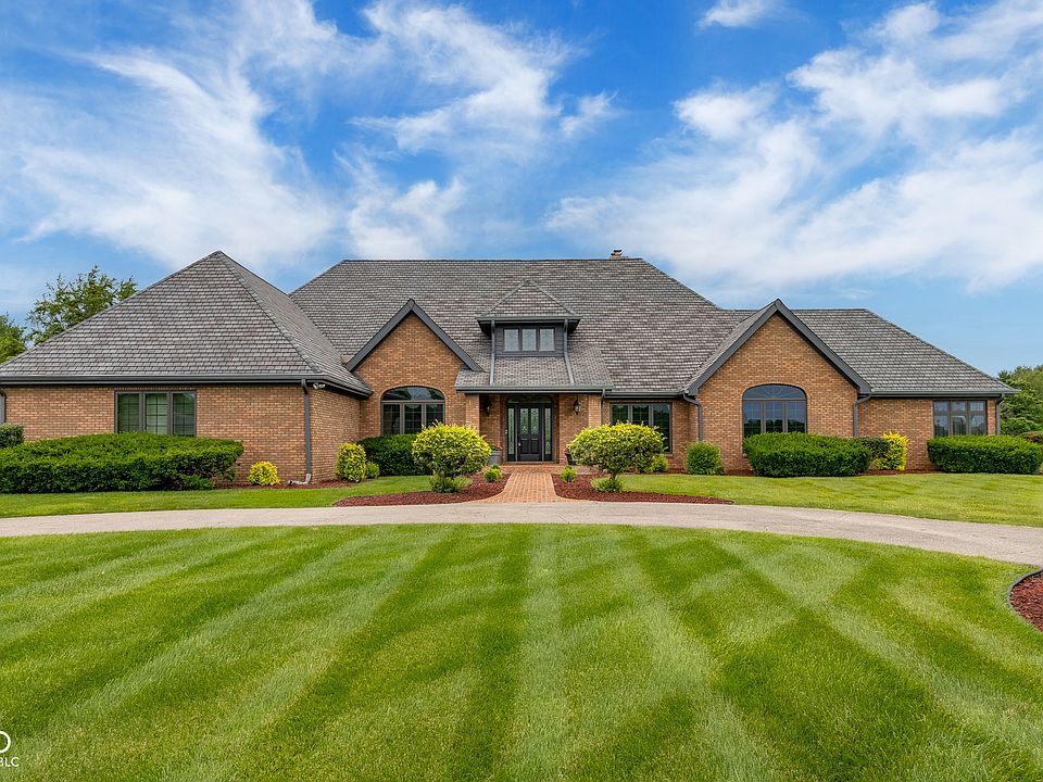 Once in a lifetime chance to own this majestic, custom home on over 2 acres, yet close to shopping, restaurants, and convenient to Columbus, Brown County, and Indy. Start with the huge entry, refinished hardwood floors, and unique custom stairway to the lower level. This elegant home has everything including a Great Room with 14' marble fireplace, vaulted ceiling and large windows overlooking the wrought iron fenced, rear yard, large Dining Room with Porcelain tile and marble floors, spacious well-appointed kitchen with SS KitchenAid appliances, Solid Surface Dekton Counters adjoins large Breakfast Room with unique wood and beamed gazebo ceiling. All season Sunroom that leads to an enormous Trex Deck looking over the grounds with plenty of room for a pool. Back inside there is a nice size office leading to large Primary Bedroom Suite with walk in shower, garden tub, double bowl sinks and walk in closet. 2 more bedrooms with Jack n Jill bath finish out the 3722 sq ft main level. Lower level has another full bath, plenty of area for various recreational activities and family time. Includes pool table. Two Geo-thermal units, Sprinkler system on separate well. No HOA fees.