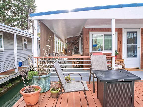 Water front living! This floating home is in the Marina, along the Columbia River, in the Kapplers Moorage. Park your boat/kayak/canoe/etc directly in front of your new home. Updated throughout. Metal roof. Pellet stove. Ductless air conditioning. Quartz counters, stainless appliances. Gas stove. Marble in bath. Updated floats. ALL appliances included. FULLY furnished (see list of items). 2 parking spots. Minutes from I-5 and Jantzen Beach. Watch fireworks & holiday ships from your living room.