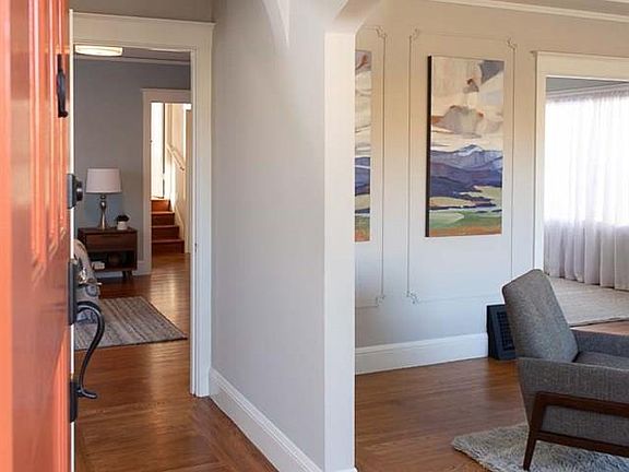 Located in the highly desirable Bushrod Community, this 1920's split level two bedroom home features a cool color pallete with original detailing in the living and dining rooms. Kitchen updates include new sink and counter, refrigerator and lighting. Adorable breakfast nook overlooks sunny and inviting back yard for intimate gatherings. Bathroom updates include new sink vanity, faucets and lighting. Original hardwood floors have just been refurbished. Unfinished basement with laundry area provides plenty of storage. Blocks from Peralta Elementary and just moments from Downtown Oakland, Berkeley and UC Berkeley, College Ave and Temescal. Perfectly situated for public transportation via BART or AC Transit. Easy access to 24, 580 and 80. You couldn't ask for a better location than this.