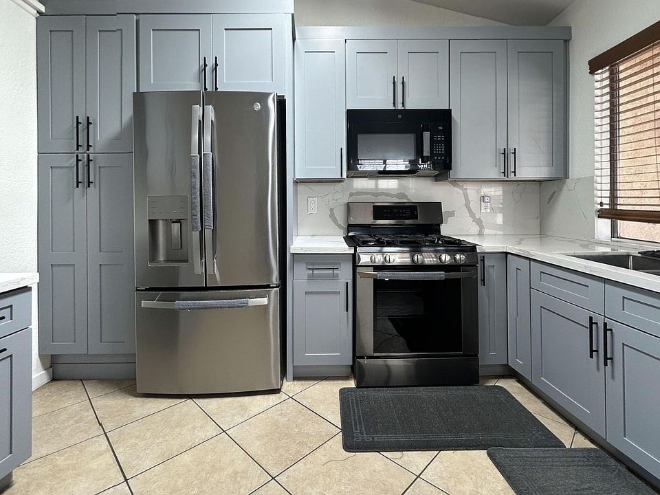 This 2 Bedroom 2 Bath home is available now in Perris! This home offers charm and easy maintenance for future tenants. Enjoy tile throughout, central a/c, and ceiling fans in all rooms including garage! The kitchen has been recently upgraded complete with new cabinets which feature soft close drawers, quartz countertops and stainless steel appliances. Both bedrooms are oversized and offer amply closet space. The guest bedroom also has direct access to the hallway bathroom and the master bedroom does feature an en suite bathroom along with sliding door for patio access. The patio includes curtains for added privacy and a drip system for easy maintenance. Laundry located in 2 car garage, washer and dryer included!