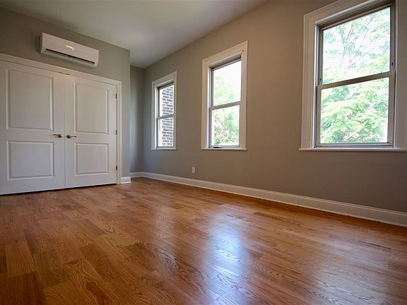 NO BROKER FEE!! Gorgeous, newly updated & freshly painted extra large 3bd 2ba duplex with washer/dryer & air conditioning in unit. 1 off street parking space included in the rent! Conveniently located on the desirable Palisade Ave in the up & coming Heights section of Jersey City. Unit features: Solid hardwood flooring throughout, open concept kitchen/living/dining room, exposed brick, fireplace, central AC, 3 large bedrooms can all fit king size beds, 2 full bathrooms, lots of windows & sun. Short 5 minute walk to the 9th St Light Rail & bus to NYC at doorstep.