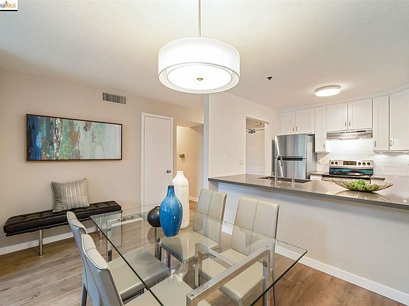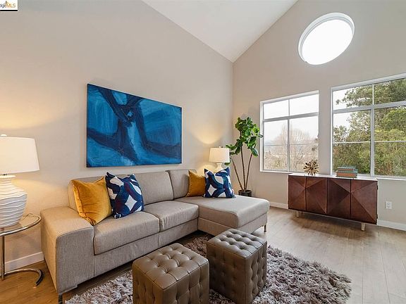 Rarely available, stunning top floor light-filled unit in the heart of Albany's award-winning school district. Freshly remodeled open kitchen w/new cabinetry, quartz counters, stainless steel appliances, breakfast bar, and custom backsplash. Meticulously renovated, this unit boasts fantastic vaulted ceilings, a master bedroom w/en-suite bath, in-unit laundry, new flooring, and plentiful storage. Enjoy amazing views of the EC hills from the serenity of your private balcony overlooking eucalyptus trees, nearby shops, and walking paths. Commuters and foodies alike will love the area's dining options, close proximity to Bart, Pacific East Mall, casual carpool, and bus lines. Enjoy entertaining at the bbq, taking a dip in the pool or hitting the gym - all on your schedule in this well-maintained community.