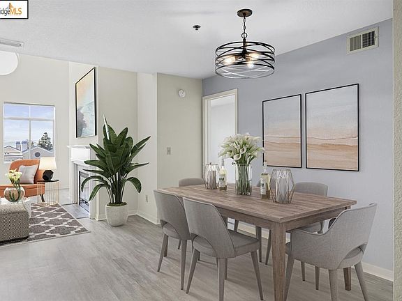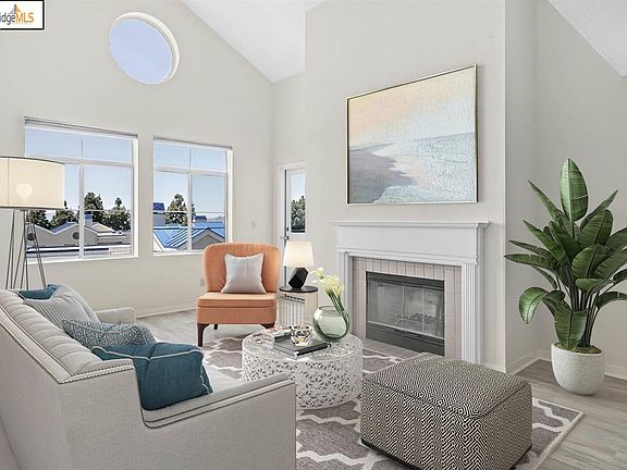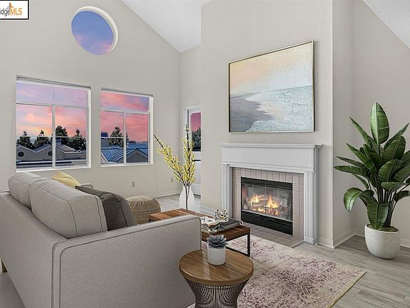 Sunny contemporary top floor condo with vaulted ceilings, colorful sunsets and soothing Western-facing vistas. An in-unit laundry, private balcony, fireplace, multiple closets and the coveted "B" floor plan with 2 separate bedroom suites, make this a great place to call home. There are 2 parking spaces. In addition to the Albany schools, and the resort-like amenities that Bayside Commons has to offer, the location is superb. Close proximity to Pacific East Mall, Costco, El Cerrito Plaza, Solano Ave., UC Berkeley, BART, AC Transit Express, freeways and hill trails. Amenities include: swimming pool, spa, sauna, fitness center, clubhouse, gated parking, tennis and basketball courts and cable TV.