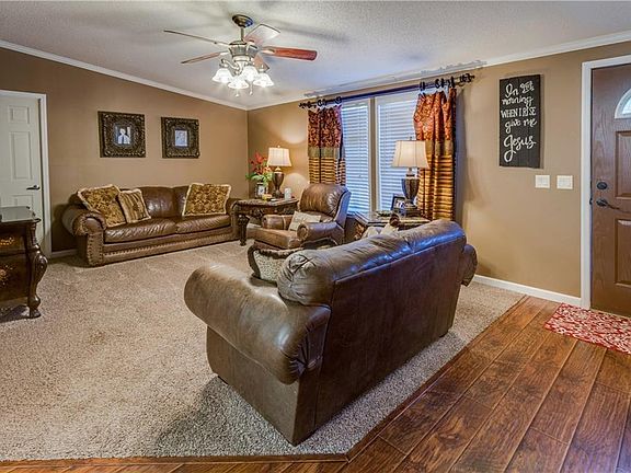 Cute as a button 4 bedroom, 2 bath home on just under an acre. Home has new flooring throughout (carpet, wood laminate), large living room, formal dining room with fireplace, large eat in kitchen with island, master suite with library/office or sitting area, double vanity, walk in shower, large tub, and walk in closet. Home also has a laundry room with large walk in pantry, fresh landscaping, brand new roof, new septic pump, too much to list! Refrigerator to convey with the home!