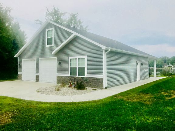 Find Tranquility on Quillette! The property is situated on Wixom Lake with over 500ft of water frontage on over 1.5 acres. This property features a custom built garage with 2x6 construction and is fully insulated. The two-car garage with living space was built in 2013 with a finished gathering area, flex area, full bathroom, laundry and kitchen with stained concrete floors throughout. The garage offers plenty of space to park your toys or set-up a workshop bench area with additional storage. The jewel of the property is the large covered porch overlooking the lake and inset fire pit. This property is a prime fishing spot and comes out to a point with with a large sandy beach that walks out into the water. There is power ran all the way to the point for a light house or tiki bar, as well as the dock side bank for a boat hoist. There are also three camper hook-ups with water, sewer and electrical so all your friends and family can come visit. This could be your relaxing up-north getaway!