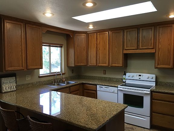 Located within the heart of Prescott, this great home in Highland Park is close to shopping, schools, restaurant and hospital. This beautiful 3 Bedroom, 2 ½ bath is centrally located in Prescott. Spacious tiled kitchen and dining with granite countertops, updated appliances, full pantry, newer cabinets. Large bedrooms with full guest bath. Fireplace in the downstairs family room with bar area is perfect for entertaining. Plenty of storage in oversized heated and cooled garage with built in cabinets. Handicap ramp in front makes this home easily accessible. Fenced yard with a garden area perfect for dogs!