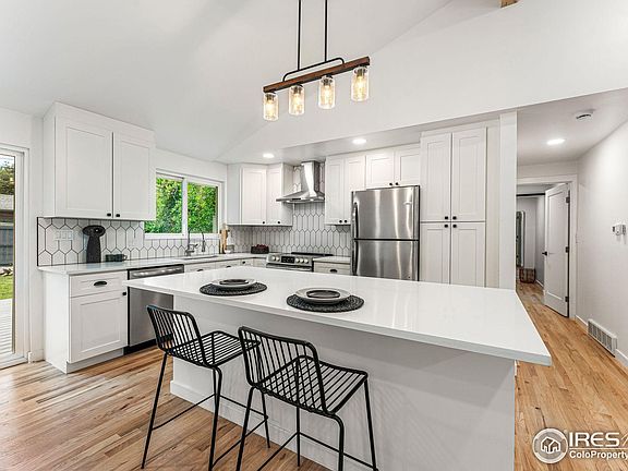 Welcome to your fully reimagined and masterfully renovated SoBo home! Just completed, this remarkable interior remodel has brought a complete transformation to every corner, leaving no detail untouched. Step into a spacious open-floor concept, where refinished oak floors and expansive vaulted ceilings with exposed beams create an inviting ambiance bathed in natural light. Perfect for hosting, the centerpiece is a quartz island surrounded by a dining space that seamlessly extends through sliding glass doors to a new deck and private garden, offering glimpses of mountain views. The main floor boasts a primary suite with two walk-in closets and a spa-like bathroom featuring a freestanding tub, separate rainfall shower, and double sink vanity. A second bedroom/studio and another full bathroom complete the main floor. Downstairs, the lower level presents a roomy playroom or flex space, two light-filled additional bedrooms, a third bathroom, a laundry room, and ample storage. With a brand-new garage and backyard shed, you'll have plenty of room for all your toys. Nestled on a community-friendly street, this home is just half a block from local and regional bus routes, a mere five minutes from Pearl St, and conveniently located near trails, parks, schools, Whole Foods, and the beloved Mountain Sun Brewery.