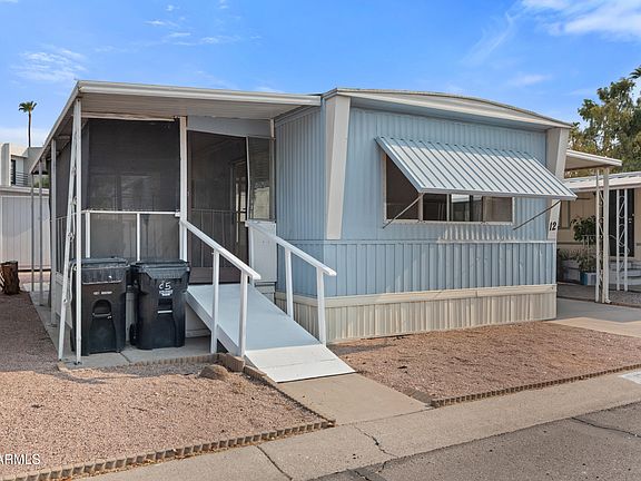 LOOK PRICE REDUCTION*2 BEDROOM 1 BATH CAVCO,PARTIAL CHAIN LINK FENCE,NEW PREOWNED CENTRAL AC,FULLY REPIPED W/PEX PIPE,NEW 30 GAL TALL HOT WATER HEATER,NEW REFRIGERATOR,TOILET,BOTH CLOSETS UPDATED,WASHER/DRYER INSIDE,RAMP TO SCREENED IN AZ/LANAI ROOM,DECK STAIRS RECARPETED,FRESH PAINT,2 CAR TANDEM COVERED PARKING,N/S FACING,LOT RENT**800.00**Close Access to Light Rail! This Age-Qualified Community is the best kept secret in Mesa! Located only 1 bus stop (500ft walk) away from the light rail station,direct access to the booming downtown areas of Mesa,Tempe & Phoenix.Shopping: Mesa Riverview & Tempe Marketplace Sports Venues: Cubs Spring Training (Baseball) Phoenix Rising(Soccer) & ASU Collegiate Sporting Events Phoenix Sky Harbor Airport,Salt River Fields Baseball,Scottsdale Fashion Sq Mall