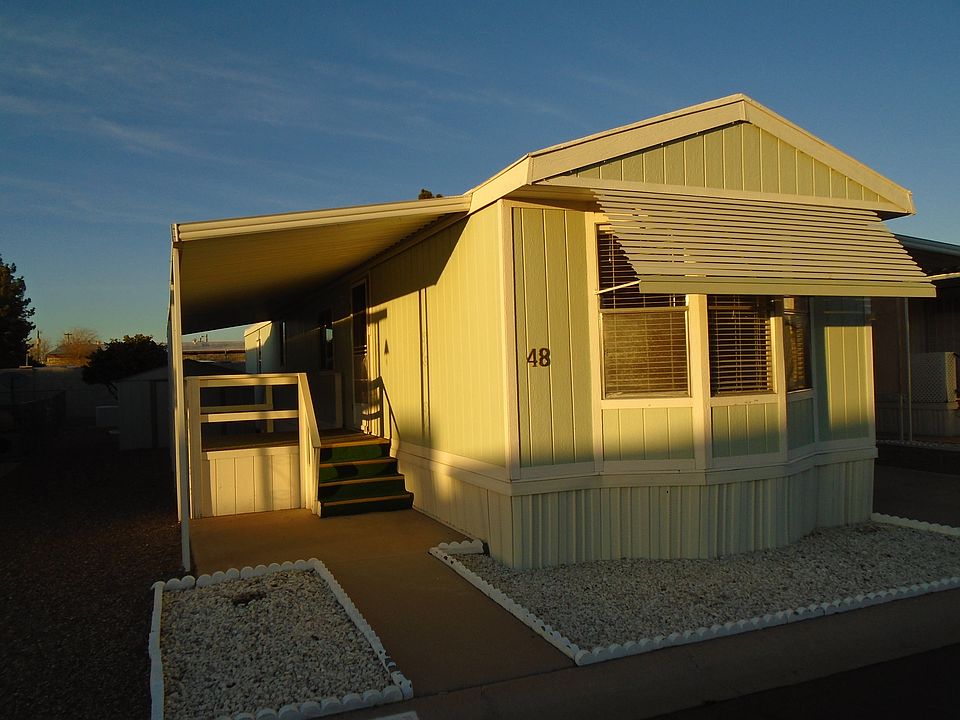 Let there be no doubt-- this is a great deal... Truly beautiful single wide manufactured home in friendly adult park in Mesa! Features front bay window, 2 decks, 1 metal shed and one powered workshop, impecable desert landscaping and all appliances. You just can't go wrong. Come quickly for this one! Reasonable cash offers considered. Possible finance with 20%+ down.
