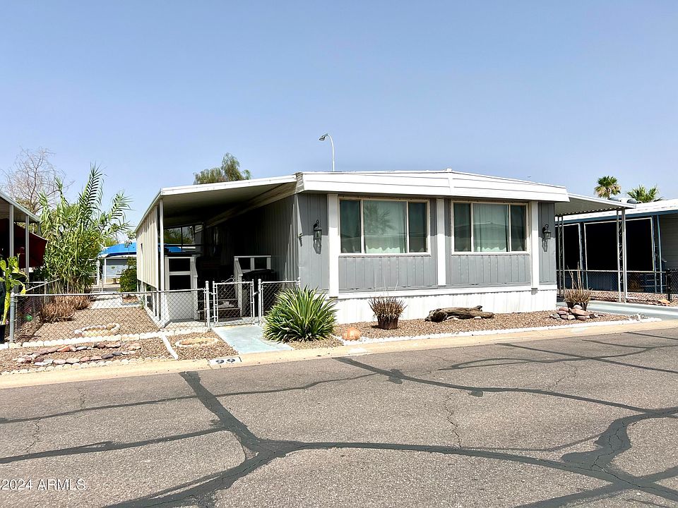 ROOF FRESHLY SEALED & COATED,DUAL PANE WINDOWS,FRONT BATHROOM W/WALK IN SHOWER,PRIVATE FULLY FENCED YARD,PET FRIENDLY,CONVENIENT ACCESS TO AMMENTITIES FROM REAR OF HOME,BACKS TO THE CULD-A-SAC,DECK FOR ENTERTAINMENT & OUTDOOR ENJOYMENT,SHADE SCREENS ON BOTH SIDES FOR ADDED PRIVACY,TANDEM 2 CAR COVERED PARKING AND SHED,LOT RENT**700.00**Close Access to Light Rail! This Age-Qualified Community is the best kept secret in Mesa! Located only 1 bus stop (500ft walk) away from the light rail station,direct access to the booming downtown areas of Mesa,Tempe & Phoenix.Shopping: Mesa Riverview & Tempe Marketplace Sports Venues: Cubs Spring Training (Baseball) Phoenix Rising(Soccer) & ASU Collegiate Sporting Events Phoenix Sky Harbor Airport,Salt River Fields Baseball,Scottsdale Fashion Squ