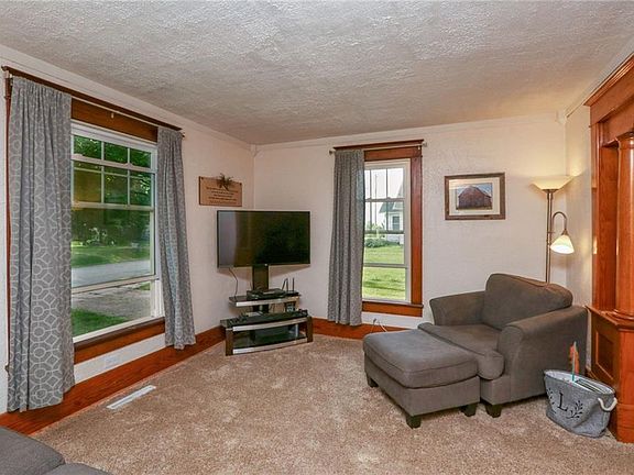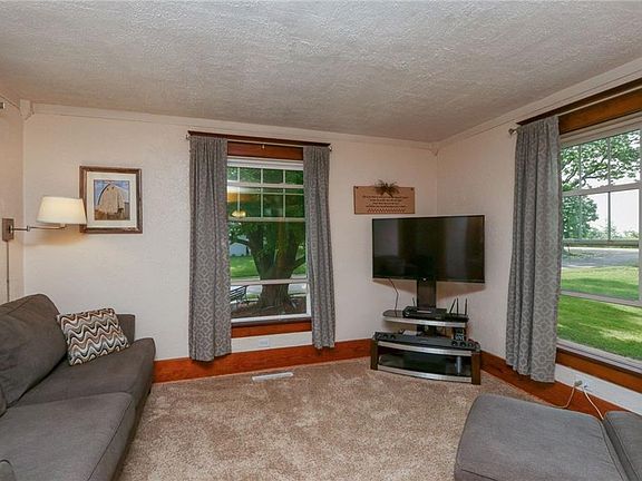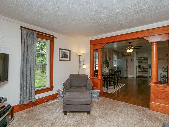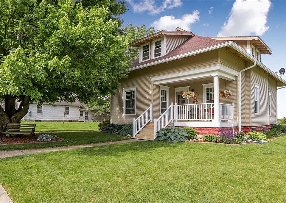 Charming 1 1/2 story home situated on a large lot with a beautiful backyard view! The curb appeal is so welcoming with beautiful landscaping, mature trees & the covered front porch for you to sit & enjoy the evenings. As you walk in, you'll love the open floor plan in this 1900 home. The spacious LR leads to the dining area & then into a newly remodeled kitchen w/ SS appliances. New flooring throughout along with 2 bedrooms & a remodeled full bath. Head up to the 2nd level to a nice loft area for an extra hangout space with 2 additional large bedrooms. The back deck opens up to a large yard with an open view of the countryside. Other features include a 1 car detached garage, newer roof, new windows, new water heater, new A/C & new exterior back door. This home is turn-key with a ton of pride of ownership that's also within walking distance to the Pre-K-12 school. Schedule your private showing today!