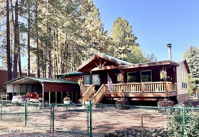 Your private, dream home on large lot in the cool pines of Munds Park awaits your arrival! Rather year-round or seasonal, this spacious 3bed, 2 bath home has a/c, wood burning fireplace, 10x16 shed, carport, metal roof, upgraded flooring, bathrooms, ceiling fans, lighting, etc. Kitchen has plenty of cabinet and counter space, as well as an island. Enjoy relaxing on the large custom deck that was newly added on, with NO neighbor to the north! The yard is fenced in and perfect for your pets. No HOA. Come and be a part of this special, desirable Munds Park community! You will be walking distance to the well-known Pinewood Country Club, close to the national forest, lake, hiking/ biking trails, tennis and pickleball courts, park, restaurants, convenient store, and more. Munds Park is only 17 miles South of Flagstaff and a 2-hour drive from Phoenix to escape the heat. Come see your new home in our neck of the woods!