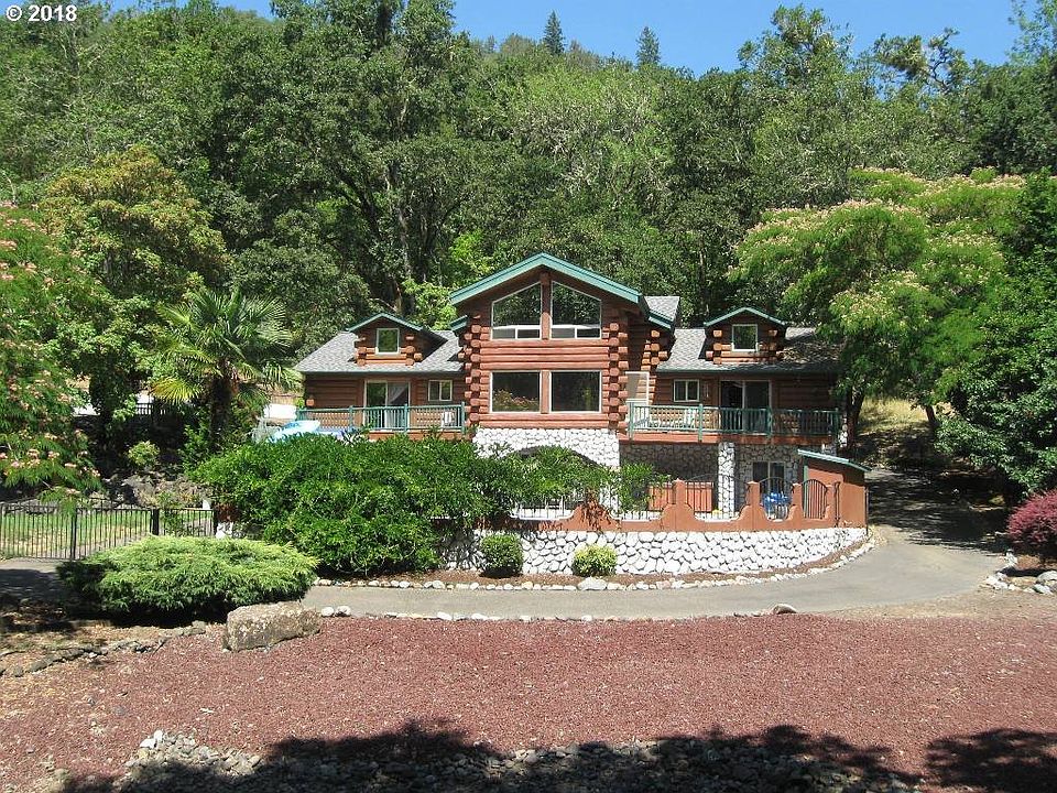 Beautiful log home on almost 4 acres that is very private but still close to town and I-5. 3 bed/2 bath main house with an attached 1 bed/1 bath guest quarters. Over 4,000 square feet on 3 levels. Attached 2-car garage, 1,152 SF detached garage/shop, second 1,500 SF RV garage/shop, attached 1-car carport, in-ground pool, asphalt loop drive around house, fenced orchard. Plenty of rocked area for vehicles, trailers, equipment.