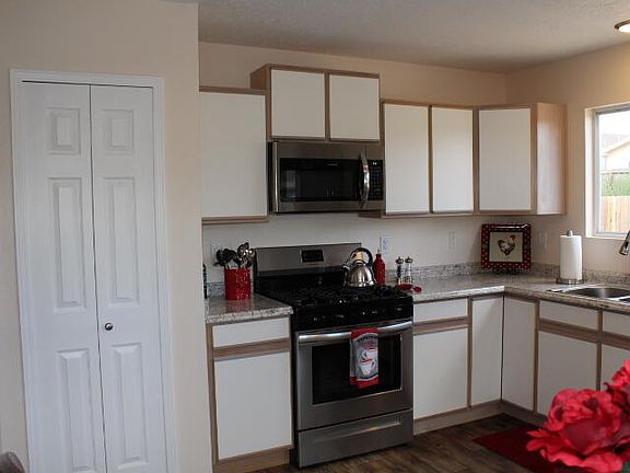 Another professional high quality remodel by Sierra Mesa Homes. Great location in the popular Northern Meadows Community. Light and bright open floor plan, large bedrooms, central bathroom, eat in kitchen, open patio, landscaped front yard, clean backyard ready for your personal landscape options and a large 2 car garage. PLUS, NEW electrical & plumbing fixtures, countertops, carpet & laminate flooring, paint, stainless steel appliances including refrigerator, doors (interior & exterior), kitchen sink, fixture & disposal, ceiling fans, cooling unit AND, updated roof, water heater and CFA heating unit within the last several years. NO POLY or KITEC plumbing. Close to parks, Rio Rancho City Center, hospitals, schools and easy access to all City of Rio Rancho amenities.