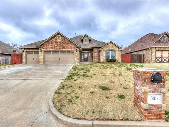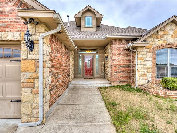 Gorgeous custom built home in Windmill Farms! Many upgrades include surround system, storm shelter, sprinkler system and Versa-Lift attic system. Large living room with fire place. Open floor plan into a lovely kitchen with granite counter tops and stainless steel appliances. Over-sized utility room with tons of cabinetry. Master bedroom is wonderful with a great wrap around closet. Really nice office area also. Master bath has double vanities, lots of cabinets, good size shower and a leaded glass window above the jetted tub. Over sized 3-car garage with a storm shelter. Back yard is perfect for entertaining and watching those Oklahoma sunsets. Great pool and fabulous deck area! Neighborhood includes a pond, basketball court and park. Don't miss out on this home! It will go fast!!!