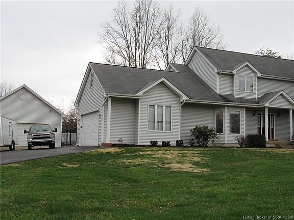 LOCATION, LOCATION, LOCATION! 3 Bedroom, 3.5 Bath home located within 2 minutes of Georgetown exit off I64. This home has it all. Open floor plan, large family room with bar and fireplace with walk up to inground pool and hot tub, in fenced in back yard. Kitchen features stainless appliances and granite countertops. In addition, 1st floor main bedroom, recently updated bathrooms, large storage area in room over garage, and hardwood throughout kitchen and living room. Room in basement could be 4th bedroom. Home also has attached and detached garages and is in Floyd Central school system. Propane tank does not stay, along with air compressor in garage. Pool table in basement is negotiable.