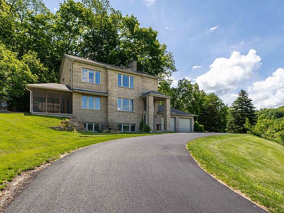 Stately and truly one-of-a-kind in The Galena Territory, this striking 3-bedroom, 3 bath residence is rare fully brick constructed home perfectly perched to take in commanding views that stretch over the rolling countryside and all the way to the horizon. Elevated siting, beautiful mature woods as backdrop, and a sweeping asphalt drive create an impressive approach and a wonderful sense of privacy and arrival. A covered entry leads into a generous foyer and a split-level layout offering easy access to the main living areas, finished lower level, and attached two-car garage. The light-filled great room is the showpiece of the home, boasting vaulted ceilings, woodburning fireplace and a dramatic two-story wall of windows that frames in breathtaking panoramas and bathes the space in natural light. An open dining area provides ample room to entertain and flows seamlessly to a screened porch, offering the perfect spot to unwind and savor peaceful wooded scenery and stunning vistas. The spacious kitchen offers plenty of cabinetry and counter space, pantry, and large breakfast bar. A comfortable guest bedroom and full bath with tub/shower completes the main level. The upper level features a bright loft overlooking the great room and views beyond, ideal as a sitting room, office, or reading nook, and a private primary suite highlighted by elevated treetop and long-range views plus an en-suite bath with whirlpool tub, dual vanity, and separate tiled shower. The finished lower level adds wonderful additional living space, including a cozy family room with gas fireplace, guest bedroom, full bath, and laundry/utility room with storage/workshop nook. Additional amenities include a two-car attached garage, fresh carpet throughout the main, upper, and lower levels, and a new water heater (2025). A rare construction style for The Territory, unmatched views, and terrific layout come together to make this home an incredible opportunity to personalize and enjoy for years to come. Incredible central location provides easy access to all amenities of The Galena Territory, including Owners' Club with indoor pool, outdoor pool, fitness facility, game room, multi-sport gym, tennis courts and more, scenic Lake Galena with newly built Marina and Pavilion, and miles of gorgeous paved and unpaved trails. Just minutes from Eagle Ridge Resort & Spa's 63 holes of golf, multiple restaurants, The Country Store, and the newly renovated Stonedrift Spa. A special offering in a sought-after setting!
