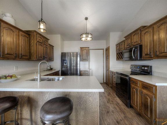 This spacious ranch-style home sits at the top of the hill in one of the most desirable neighborhoods in SE Rapid City. 4 big bedrooms all with convenient closet organizers. 3 full bathrooms - including a great master bathroom with double sinks. A nice eat in kitchen with lots of cabinet space and a breakfast bar. A big living room and formal dining area. Plus, a perfect sized completely fenced backyard with mature trees for added privacy that you can enjoy from your brand new covered deck or lower level patio. NEW! NEW! NEW! All new flooring, new light fixtures, new bathroom vanities, new solid surface kitchen counter tops, new decks, all new stainless appliances in the kitchen, new central A/C and fresh paint in and out. Seldom do you find a like-new home in a wonderfully established neighborhood like this. Close to medical, shopping and schools. The best of everything rolled into one great home. Move in and start living the dream!