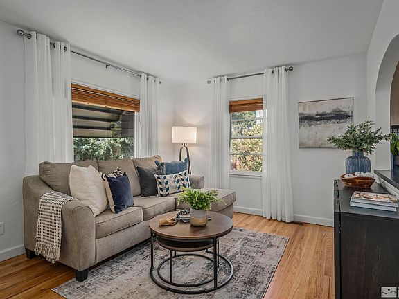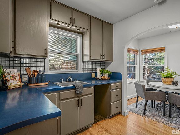 This darling home in desirable Old Southwest Reno offers all of the charm and character that you would expect of a home built in 1940. Nestled on a tree-lined street, this delightful home offers many recent improvements throughout 784 square feet with 2 bedrooms and a full bathroom. The extended driveway and detached 2-car garage allow for plenty of parking., Interior features include: living room with hardwood flooring and pass through to the kitchen; kitchen with newly painted cabinets, new cabinet hardware, gas stove and built-in microwave; dining room with hardwood flooring and lots of natural light; two oversized bedrooms with hardwood flooring; one bathroom with tub/shower combo, pedestal sink and retro blue tile; and a laundry room with new lvp flooring and extra storage. Exterior features include: fenced front and back yards; adjustable window shutters; extended driveway to the 2-car detached garage; and a freshly painted deck with built-in seating. Recent improvements include: new sewer line; new interior and exterior paint; freshly painted cabinets; refinished hardwood flooring; newly painted deck; and a newer roof. Washer, dryer and kitchen refrigerator included.