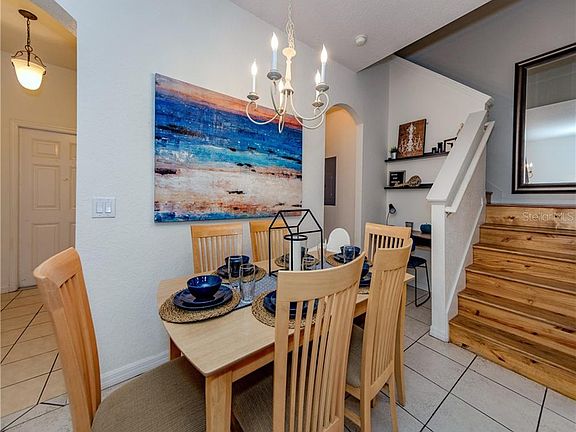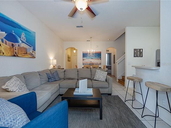 MUST SEE THIS UNIQUE HOME! Just a few minutes walk to Resort Amenities! Home includes a lockout bedroom downstairs and two large master bedrooms upstairs with adorable balcony overlooking the resort. New luxury vinyl flooring on upper floor. Full size washer & Dryer and the only floor plan in the Regal Palms with a laundry room. Comes fully furnished with updated well staged furniture and nice decorative touches. Rental ready/live in ready! Make this your home and live a resort style life or rent for profits! The Regal Palms is a beautiful resort 15 mins from Disney and is a serene residential community as well as a short term lodging destination rated 4+ stars on all rental platforms and conveniently located within minutes of shopping/restaurants and golf course. Resort amenities are massive and include a lazy river, zero entry pool, playground, fitness center, indoor/outdoor Jacuzzi, Pool side grill, arcade, front desk concierge and so much more! Schedule your showing today and come see why you and/or your guests will never want to leave!